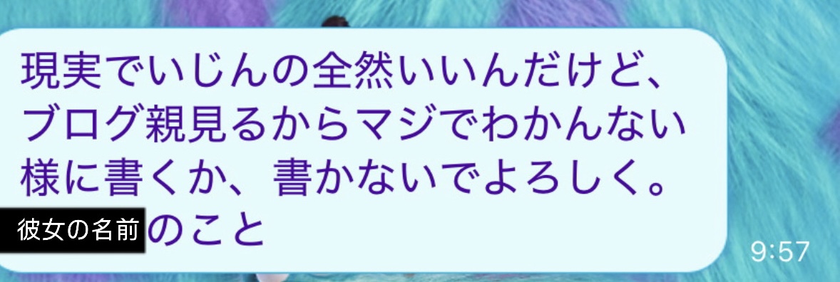 このLINEを9:57に送ってくるあたりがガチすぎて気持ち悪いですね。目が覚めて、冷静に考え、私がブログに書いてしまうと、親にバレてしまって、やばいと思ったのでしょうか。可愛いですね❤️